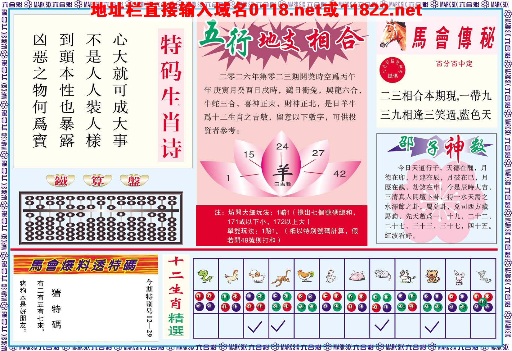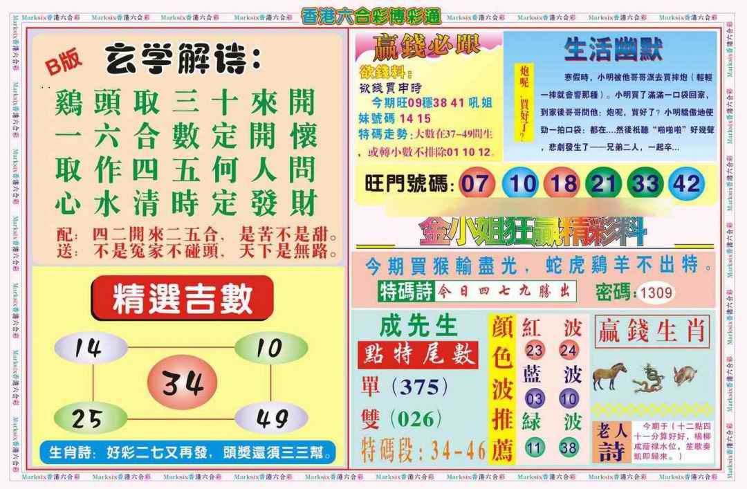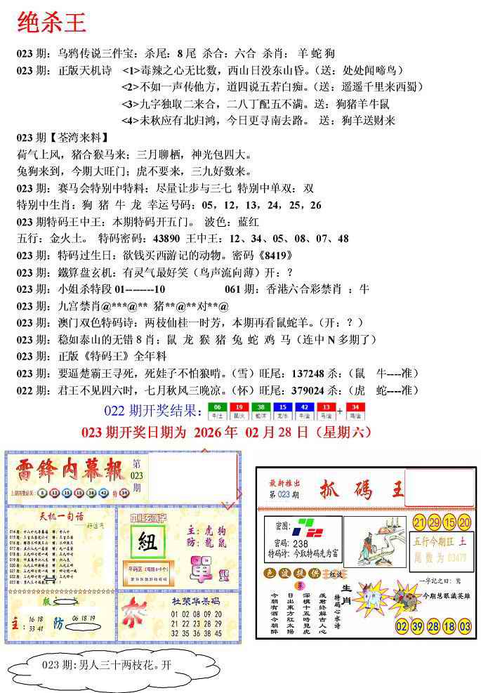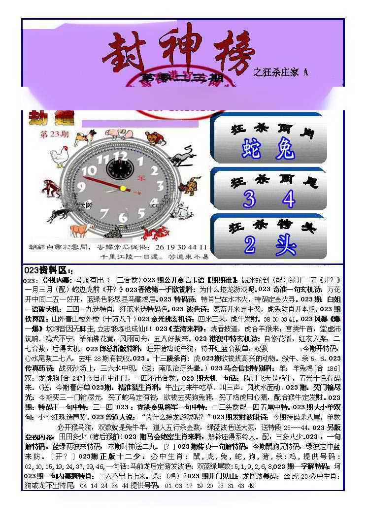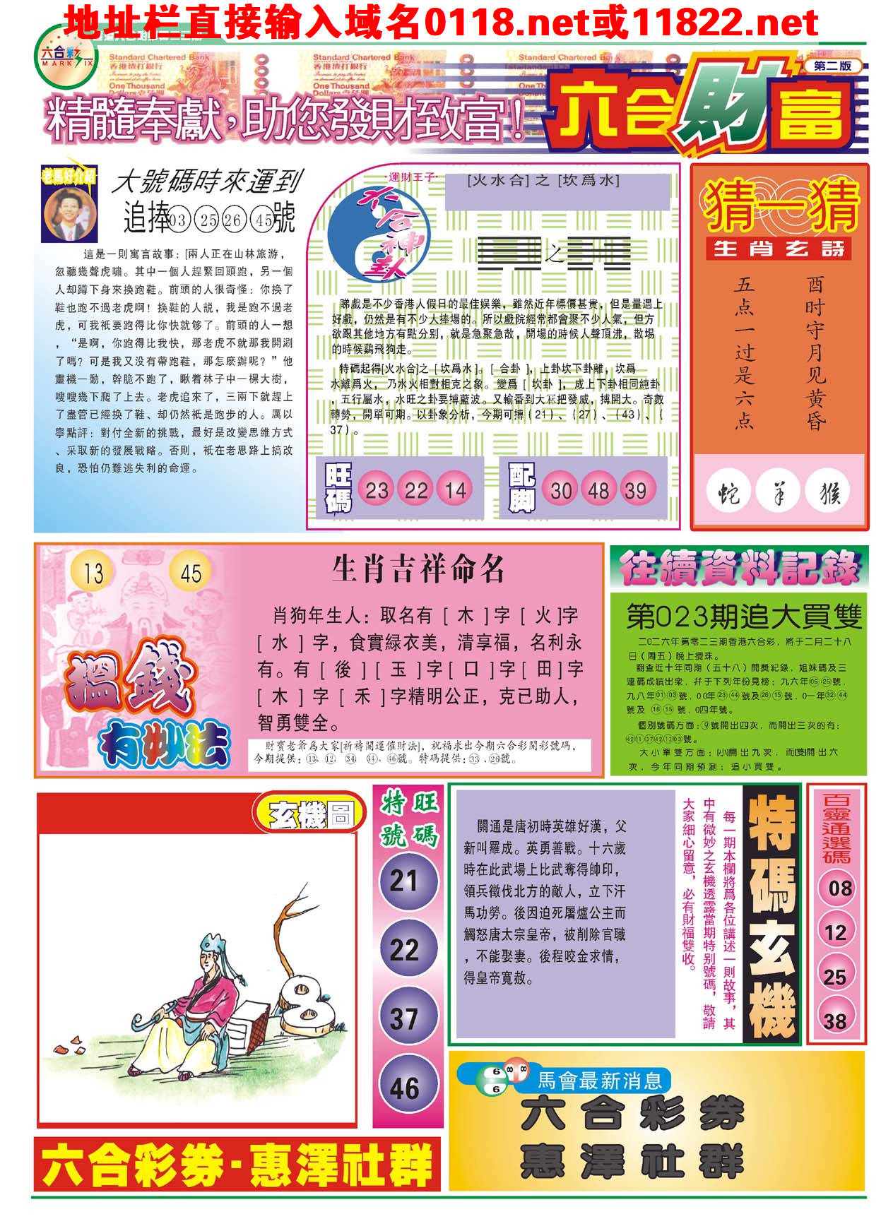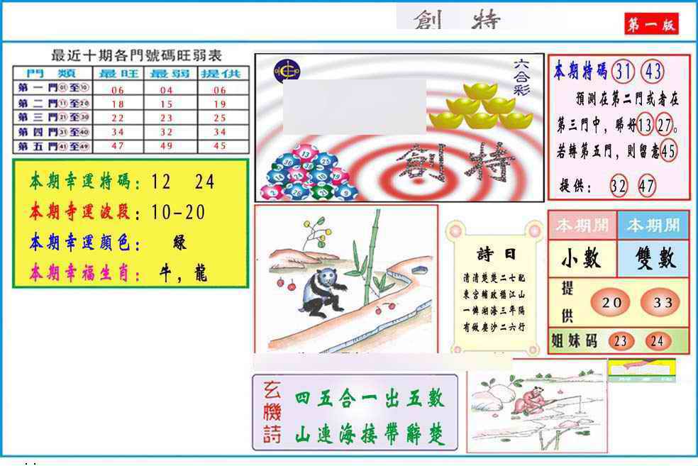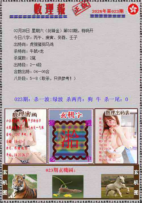 063 六合禅机A 064 六合禅机B 069 特 新 报A 070 特 新 报B