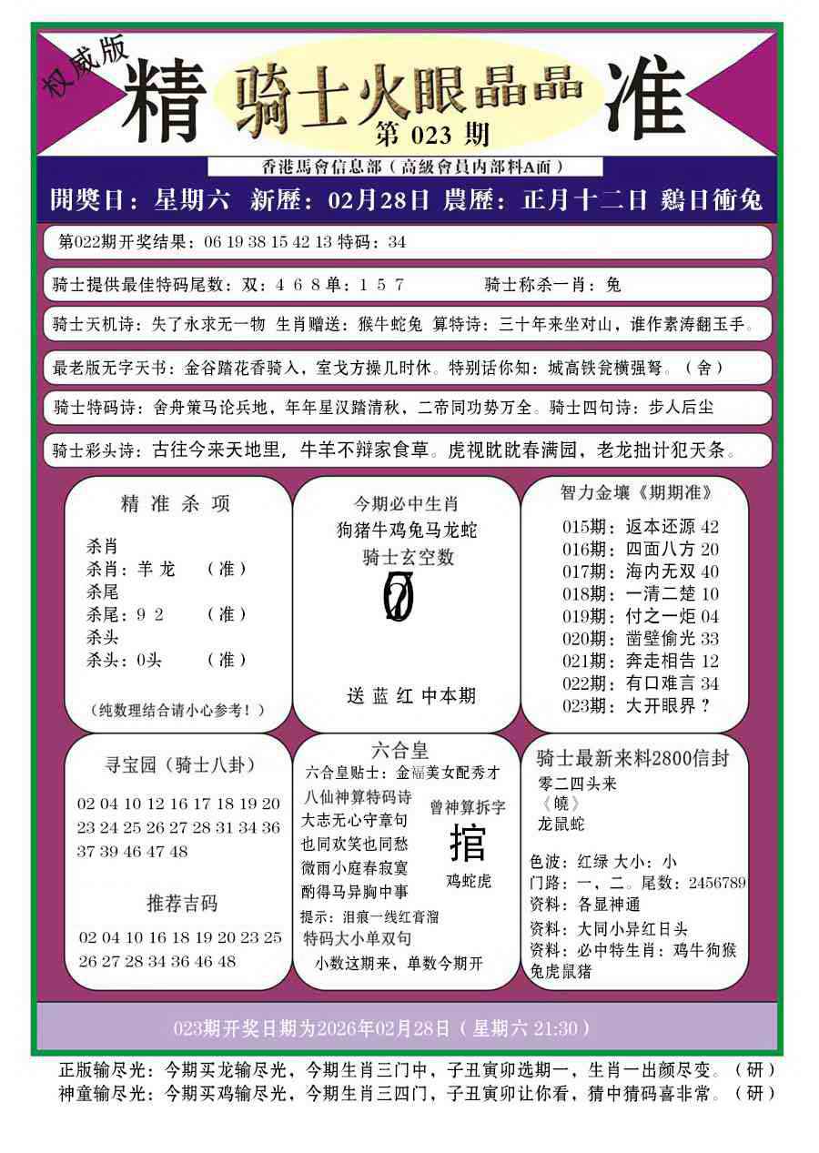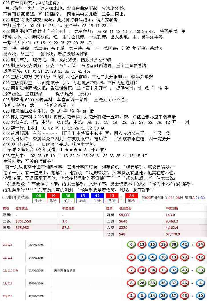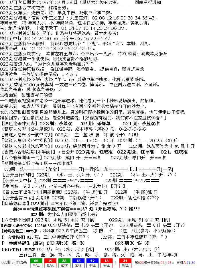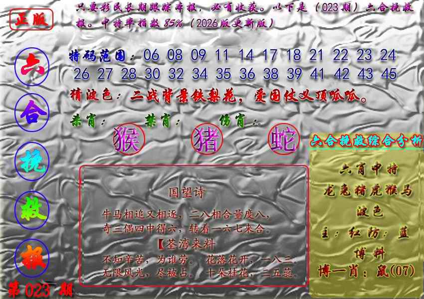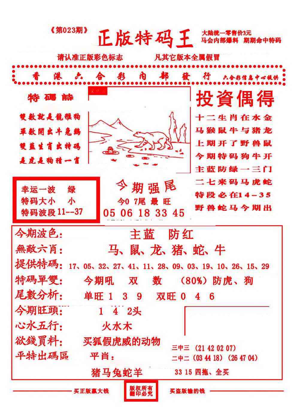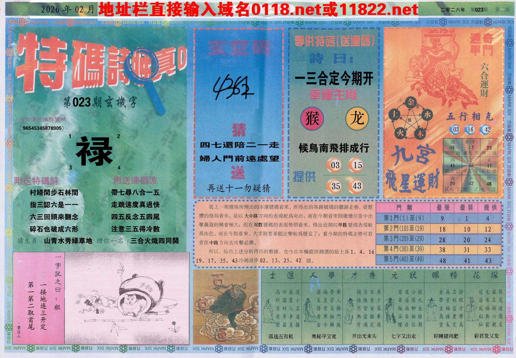 063 六合禅机A 064 六合禅机B 069 特 新 报A 070 特 新 报B