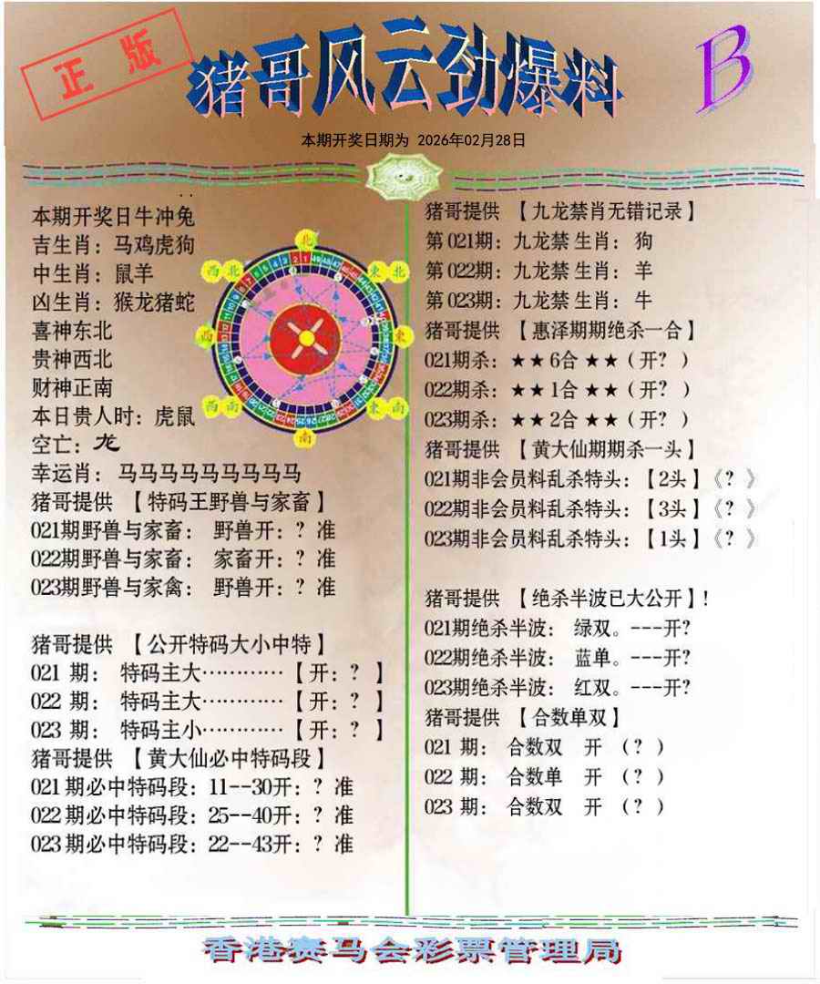 829 旺财三码 830 猫王二肖 831 马会快特A 832 马会快特B