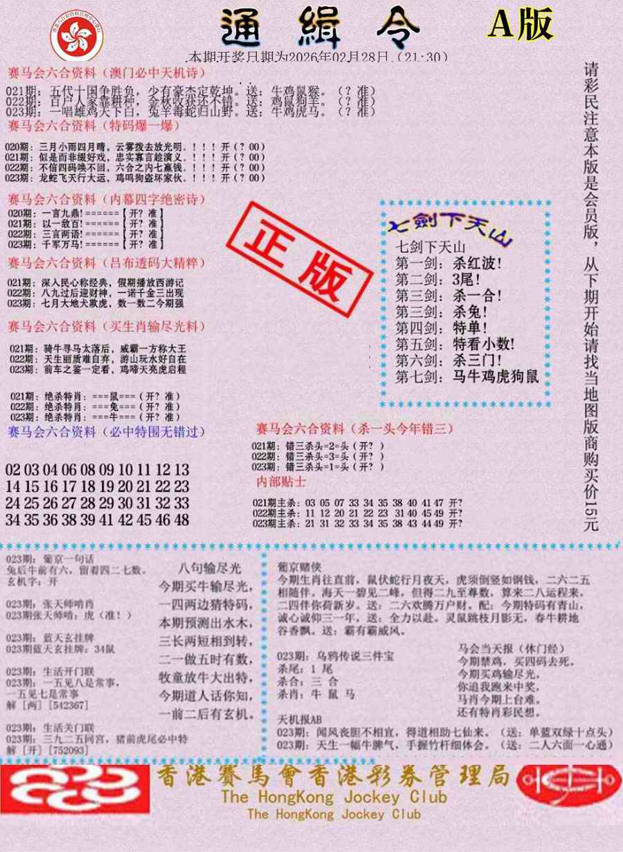 023 黄大仙灵码A 024 黄大仙灵码B 025 曾女士铁板神数A 026 曾女士铁板神数B