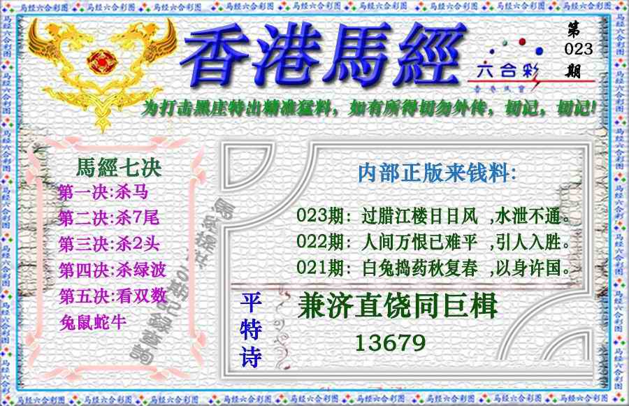 1700 冚家富贵B 1701 马经发财报 1702 管家婆新传密 1703 香港三八婆密报