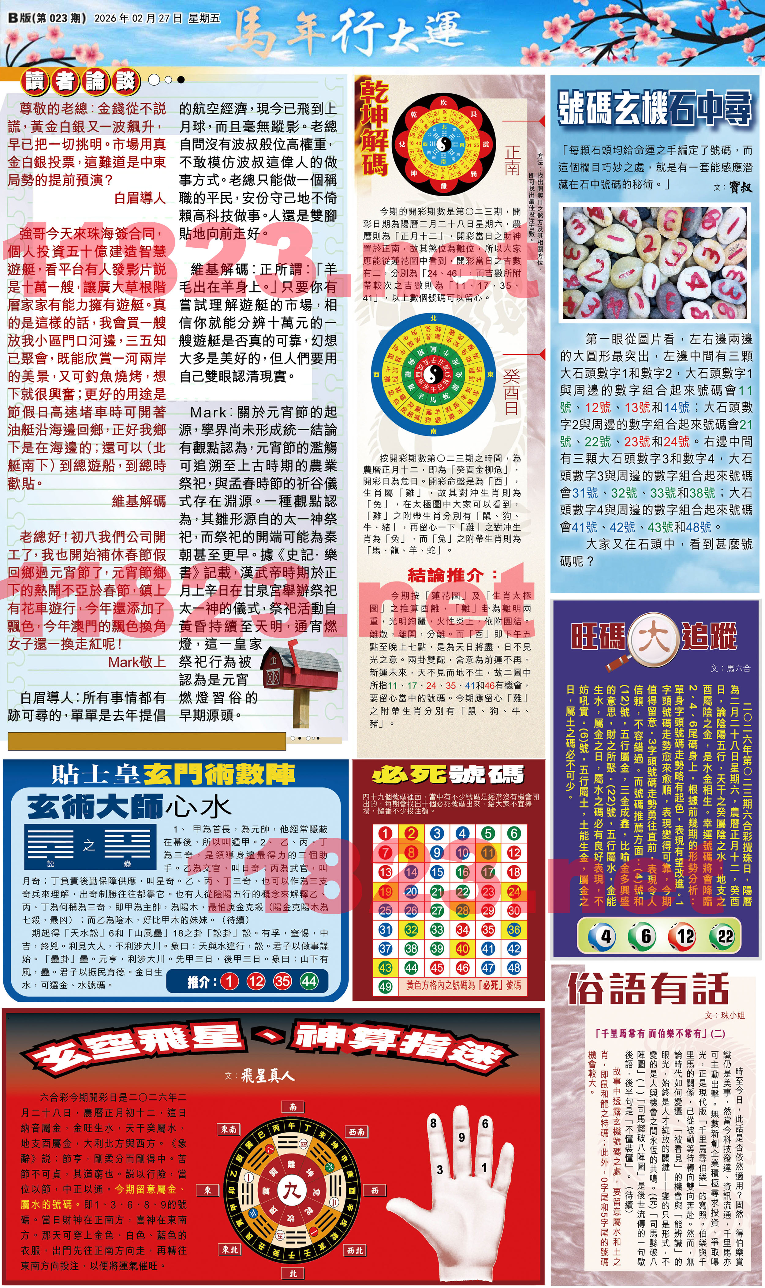 1440 玄机报(大版) 1441 马会直击 1442 旺角街边小报 1443 新千金小姐A